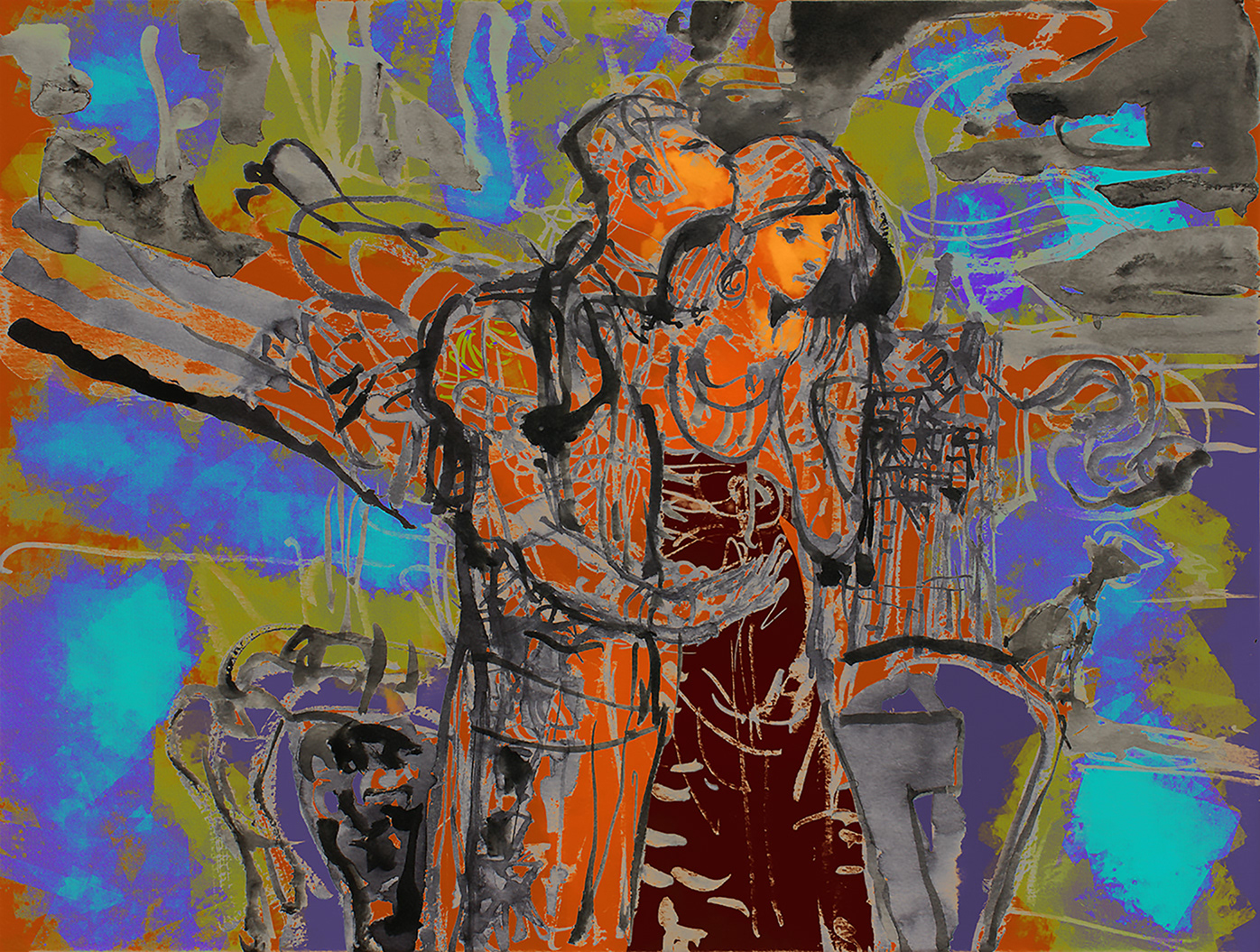 Pareja cromatizada. Grabado digital. 2020.